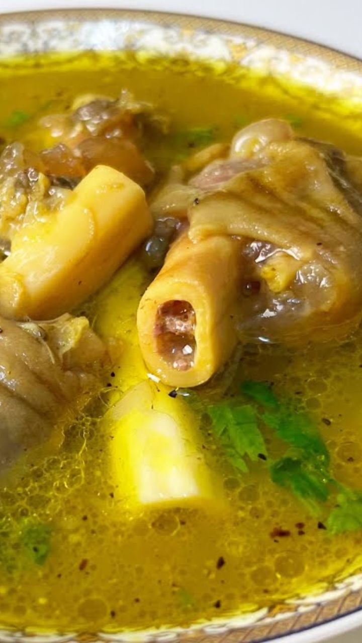 मटणाचे पाय स्वच्छ धुऊन प्रेशर कुकरमध्ये पाणी टाकून ६–७ शिट्ट्या होईपर्यंत उकळा, जेणेकरून ते पूर्ण मऊ होतील.