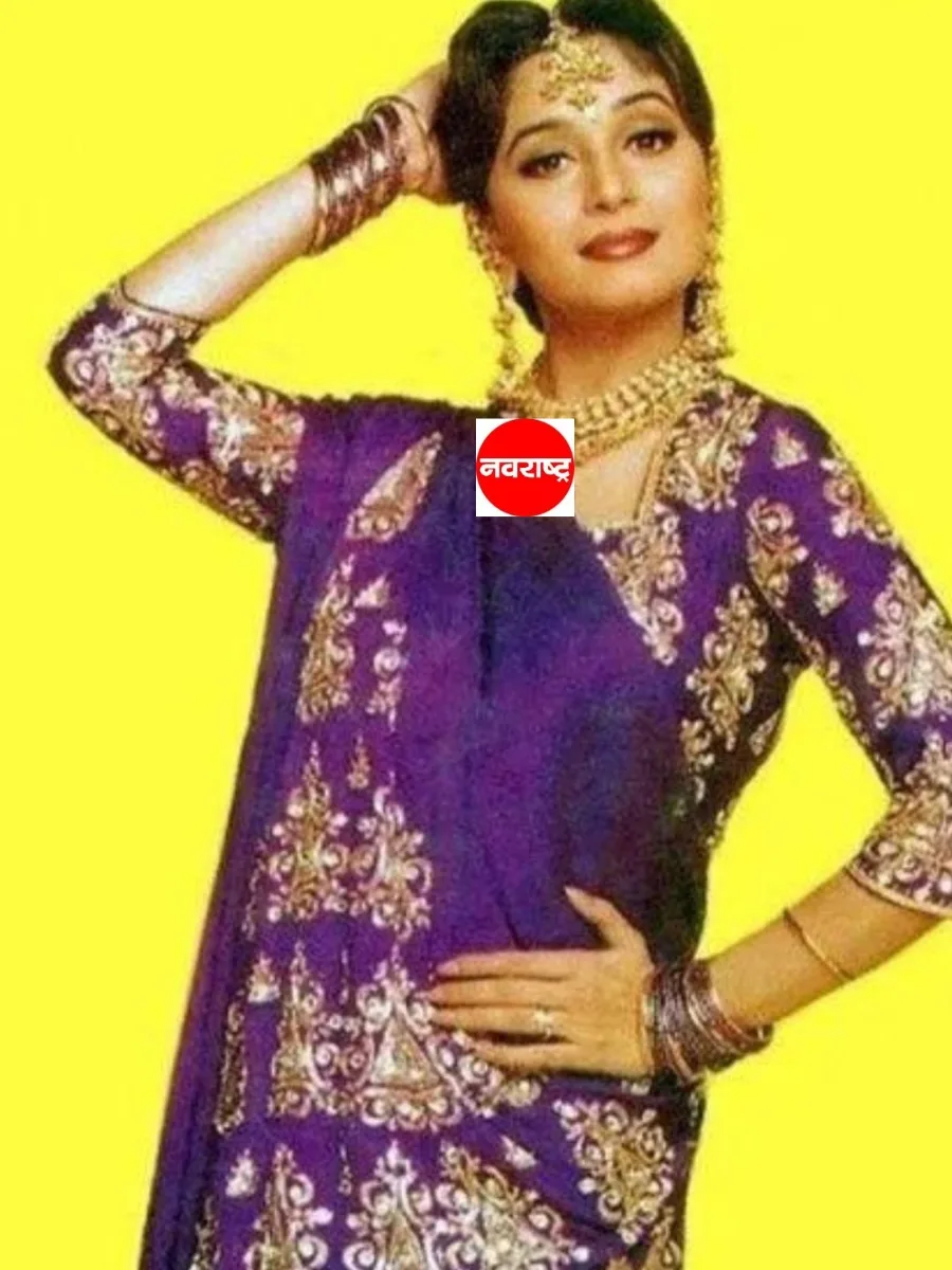 जांभळ्या रंगाच्या साडीतील माधुरीच्या या लूकचे आजही चाहते आहेत.