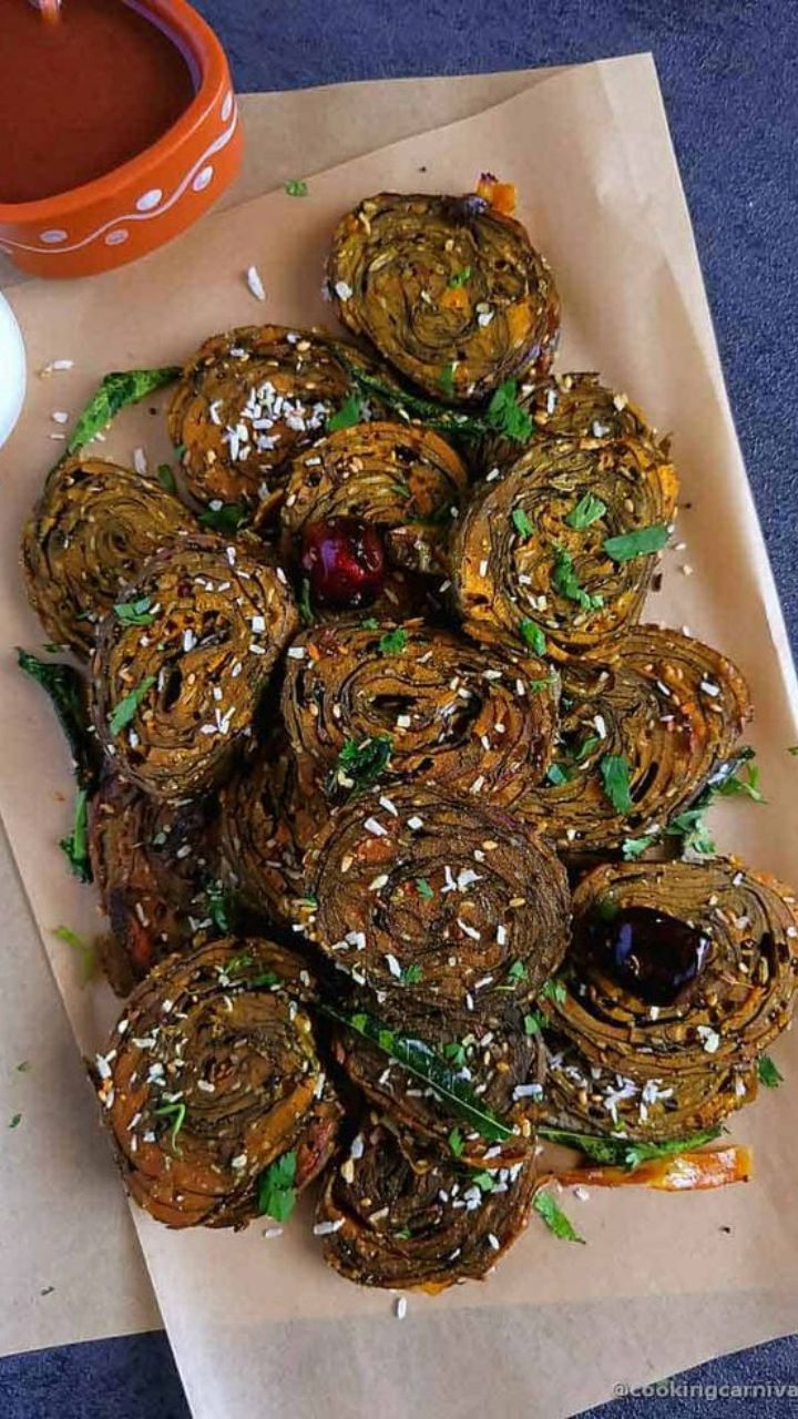 गुंडाळीच्या तुकड्या करून इडली पात्रात १५–२० मिनिटं वाफवून घ्या.