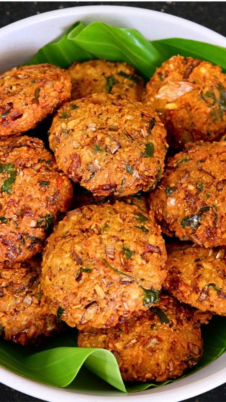 हाताला थोडे पाणी लावून मिश्रणाचे छोटे गोळे घ्या आणि हलकेच दाबून वड्याचा आकार द्या.