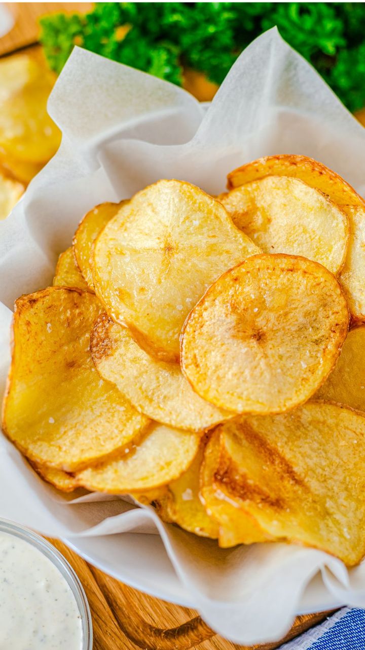 बटाट्याचे चिप्स सोनेरी आणि कुरकुरीत होईपर्यंत तळा.