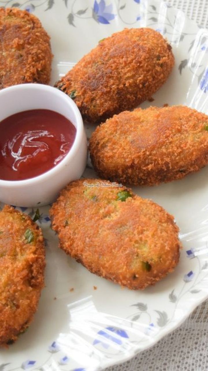 तयार कटलेट्सना बाहेरून हलके ब्रेडक्रंब लावून घ्या (क्रिस्पी होण्यासाठी).