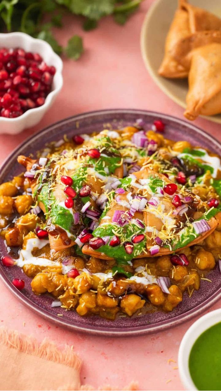 चिरलेला कांदा आणि टोमॅटो वरून पसरवा, ज्यामुळे चाट अधिक ताजी आणि चविष्ट लागते.