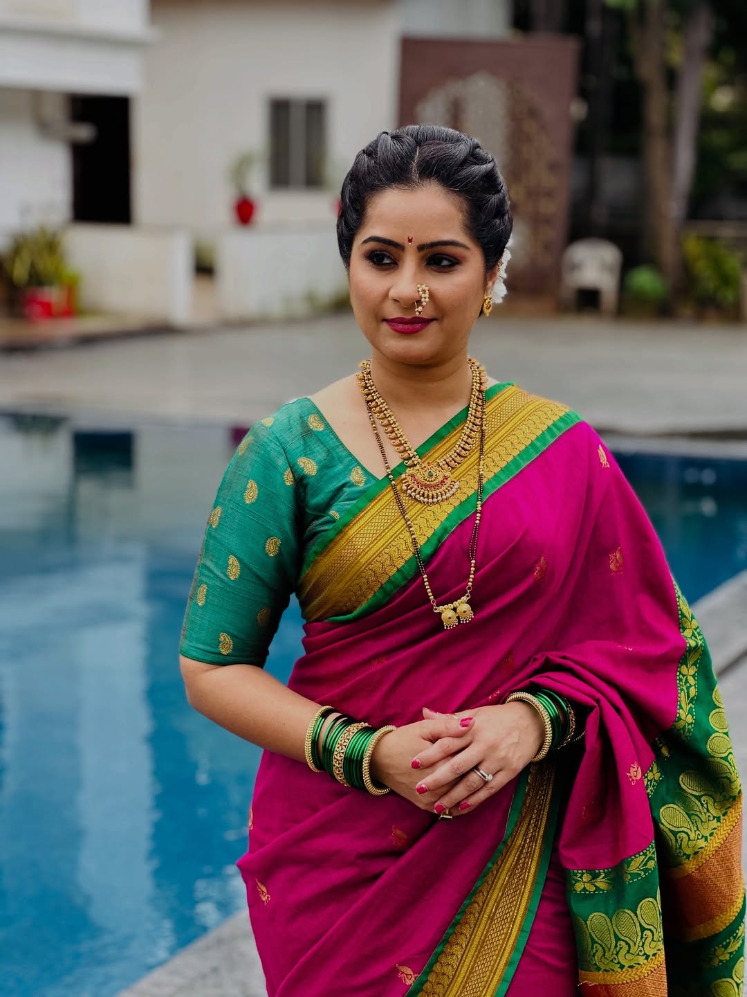 गुलाबी रंगाच्या या साडीत अभिनेत्री फार सुंदर दिसत आहे.