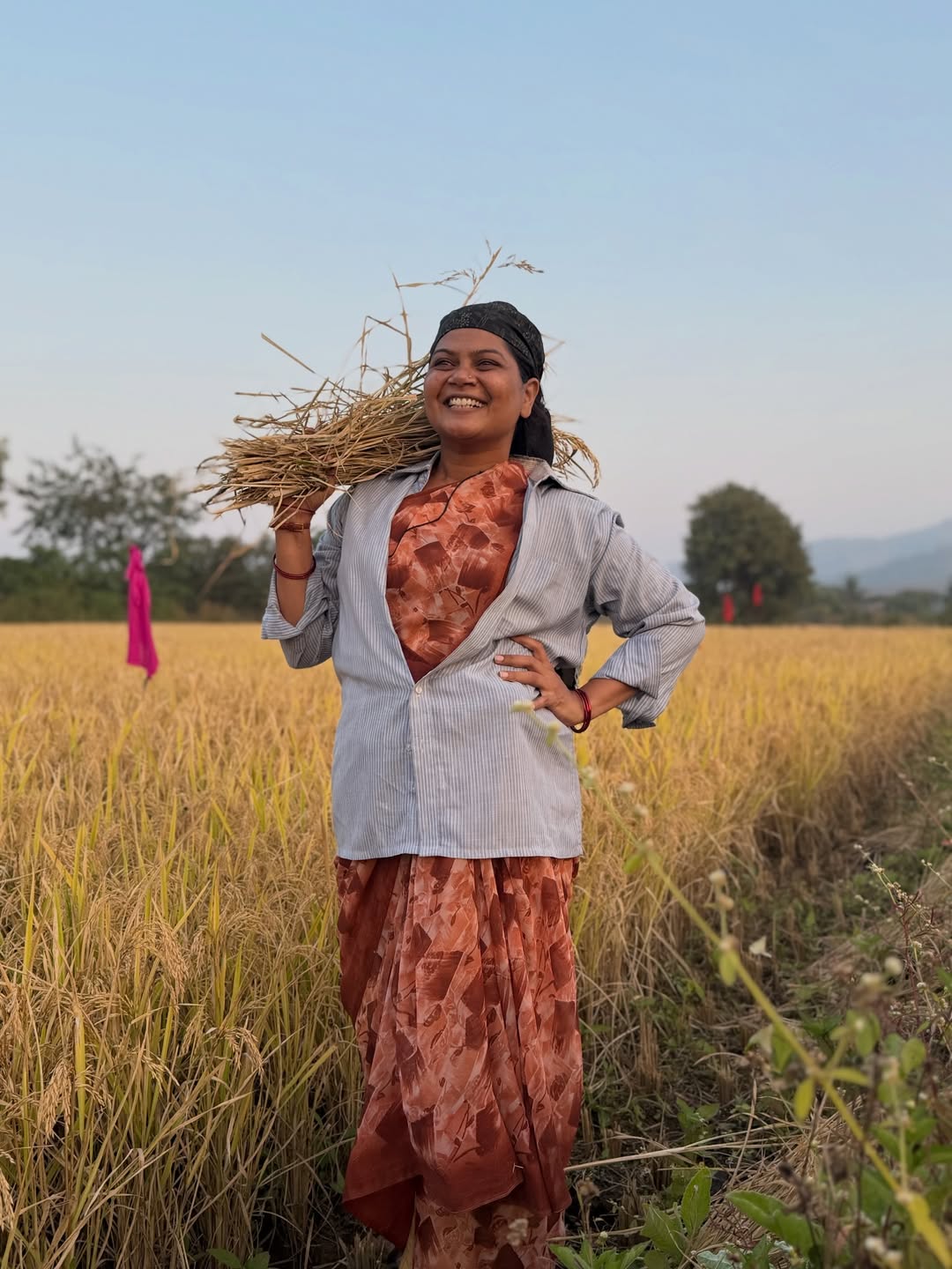 हातात पेंढा, साधी साडी आणि थकलेला चेहरा, तिने आताच शेतात काम केल्याचे स्पष्ट चित्र सांगत आहे.