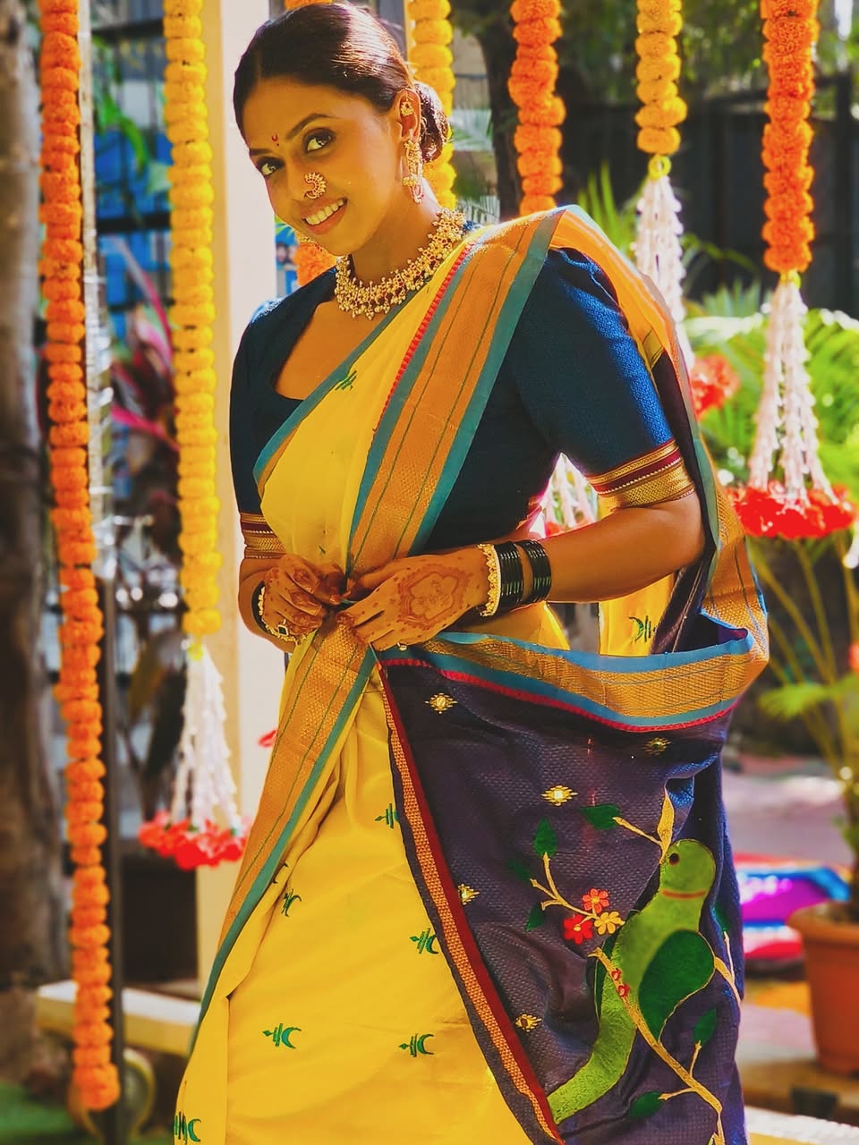 अभिनेत्रीने नववारी साडी परिधान केली आहे.