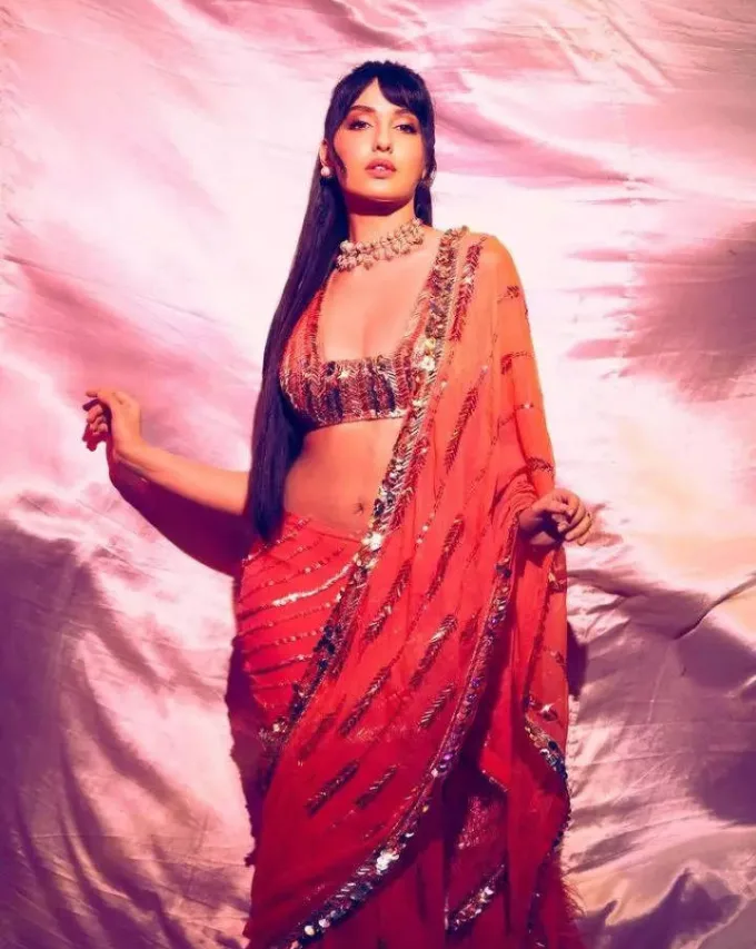 नोरा साडीसुद्धा स्टायलिश अंदाजात कॅरी करते.