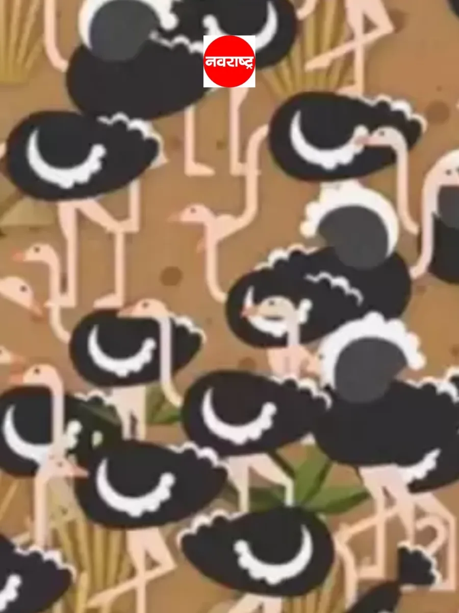 या फोटोत शहामृगांच्या गर्दीतून छत्री शोधायची आहे.