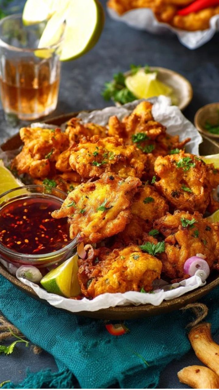 पकोडे सोनेरी आणि कुरकुरीत होईपर्यंत तळा. किचन टिश्यूवर काढून गरमागरम चटणी किंवा सॉसबरोबर सर्व्ह करा.