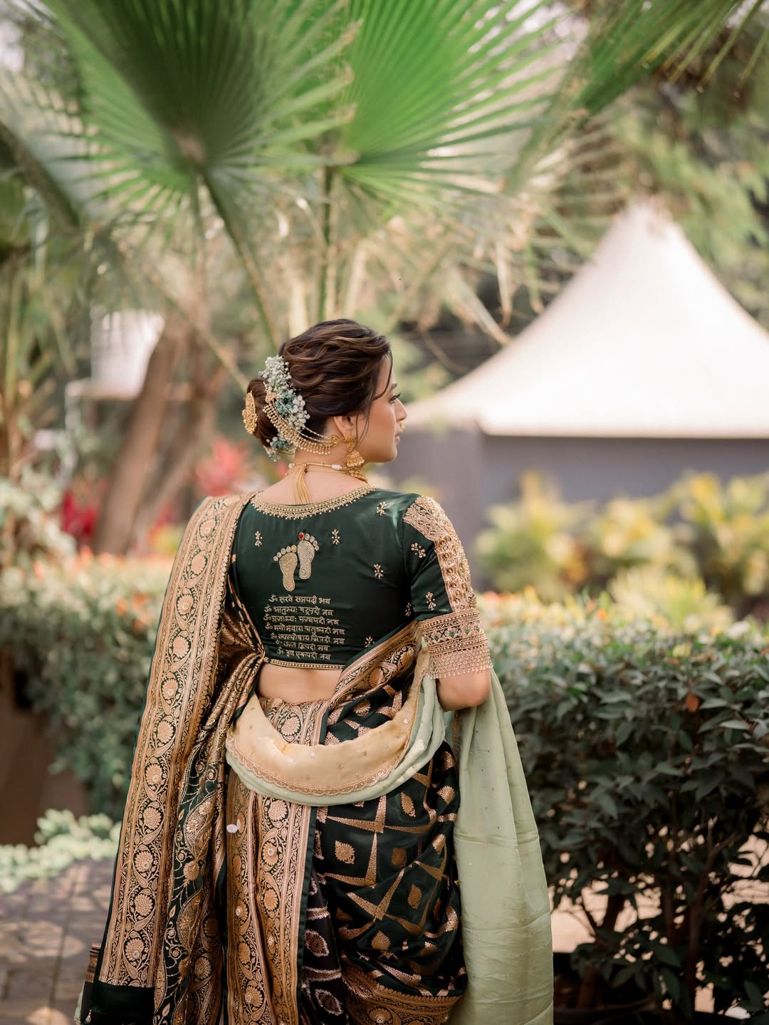 अभिनेत्रीच्या या ब्लाउजवर सप्तपदी मंत्र विणले गेले आहे.