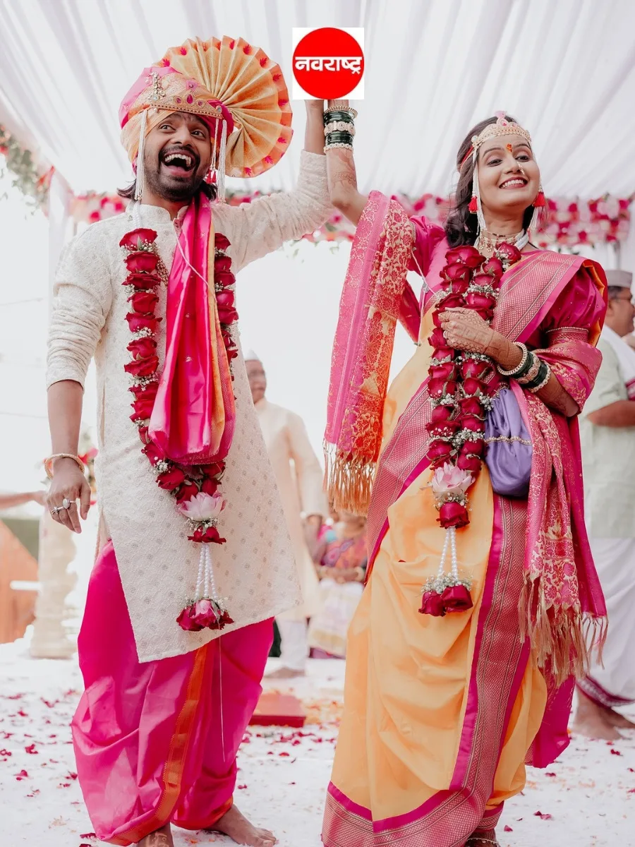 यावेळी प्रथमेशने पांढऱ्या रंगाचा कुर्ता घातला होता, तर क्षितीजाने गुलाबी-पिवळ्या रंगाची साडी नेसली होती.