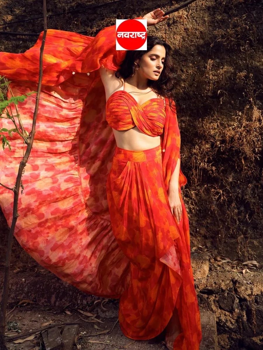 प्रिंटेड असा फॅन्सी वेस्टर्न ड्रेस प्रिया बापटने वेअर केला आहे.