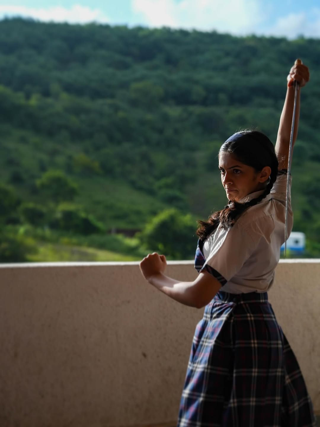 अभिनेत्री पोस्टमध्ये गणवेश घालून आहे.