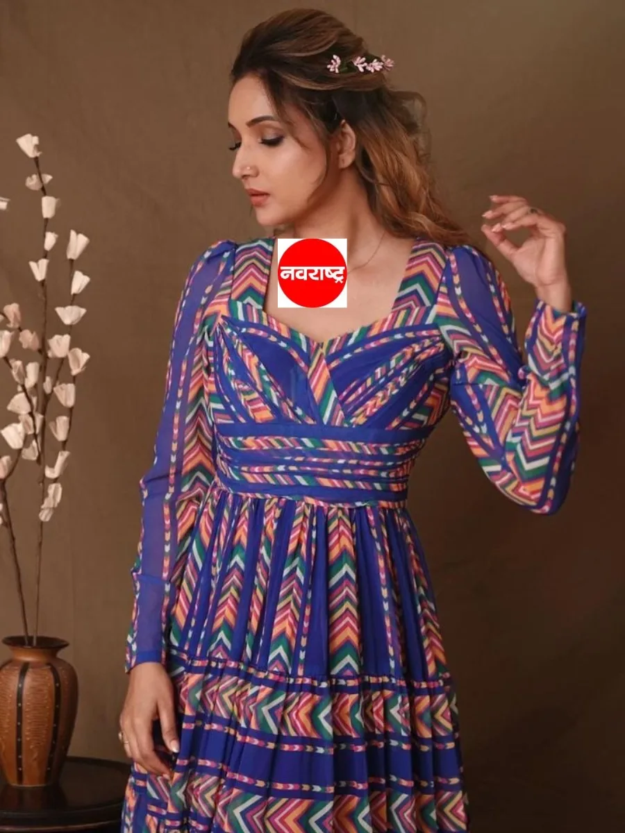 निळ्या घेर असलेल्या ड्रेसमध्ये रुपाली यात दिसत आहे.