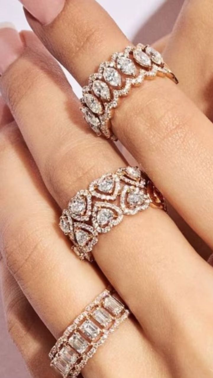 Square शेपमधील रिंग डिझाइन हातांसाठी खूप छान आहे