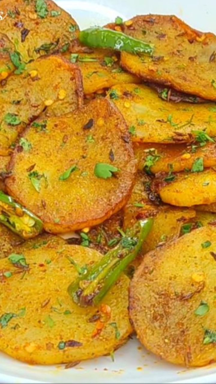 बटाटे स्वच्छ धुऊन बारीक, गोल काप (काचऱ्या) करून घ्या.