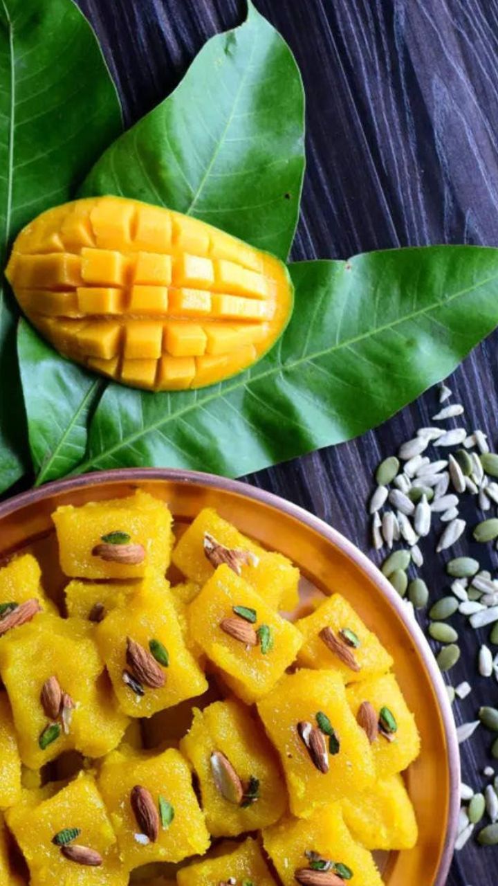 खवा हलका सोनेरी झाला की त्यात आंब्याचा गर घाला आणि नीट मिसळा.