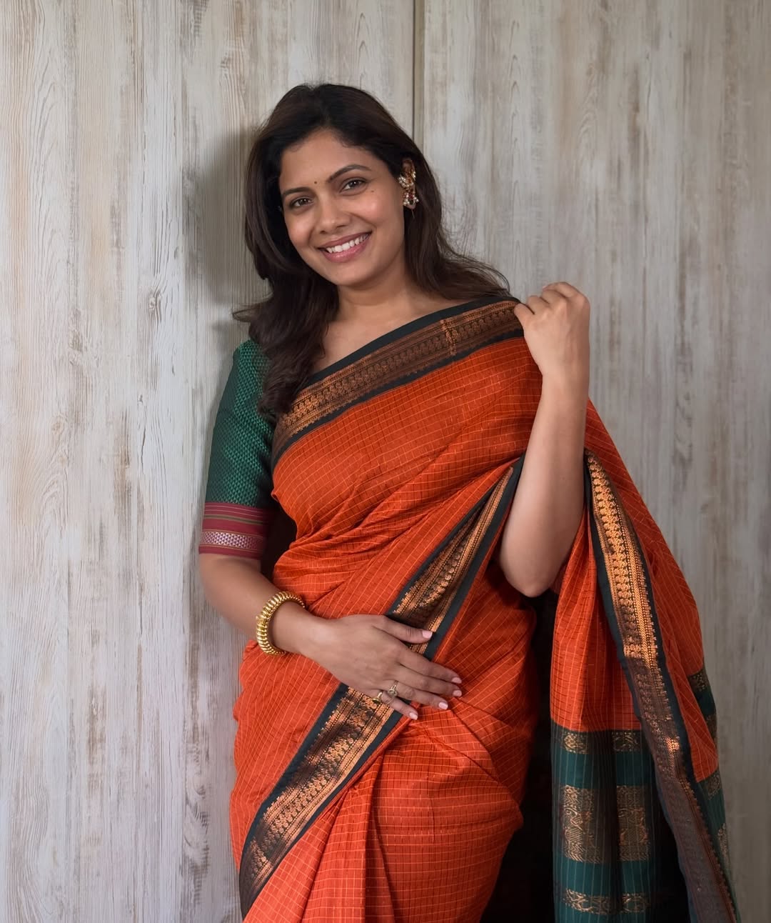अभिनेत्रीने सुंदर अशी साडी परिधान केली आहे.