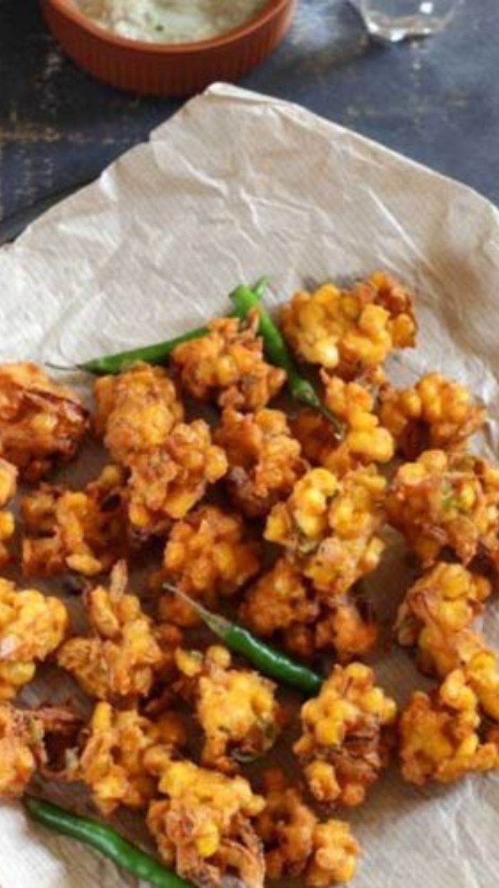 गरमागरम कॉर्न पकोडे हिरव्या चटणी किंवा टोमॅटो सॉसबसोबत सर्व्ह करा.