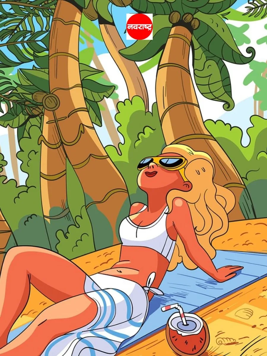 फोटोत एक मुलगी समुद्राच्या किनारी बसलेली दिसत आहे.